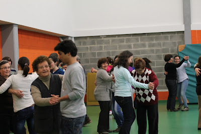 Depois da palestra, séniores e jovens participaram num momento de atividade física no pavilhão da escola, que foi muito divertido e relaxante.